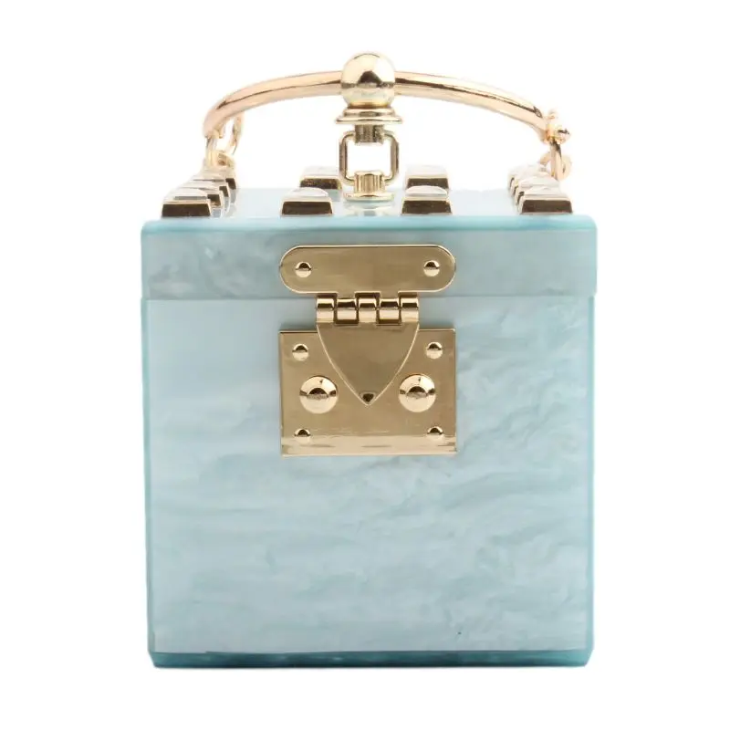 Big Deal Square Shape Women Acrylic Clutch Evening Bag Metal Wristlets Wedding Party Prom Mini Handbag Purse